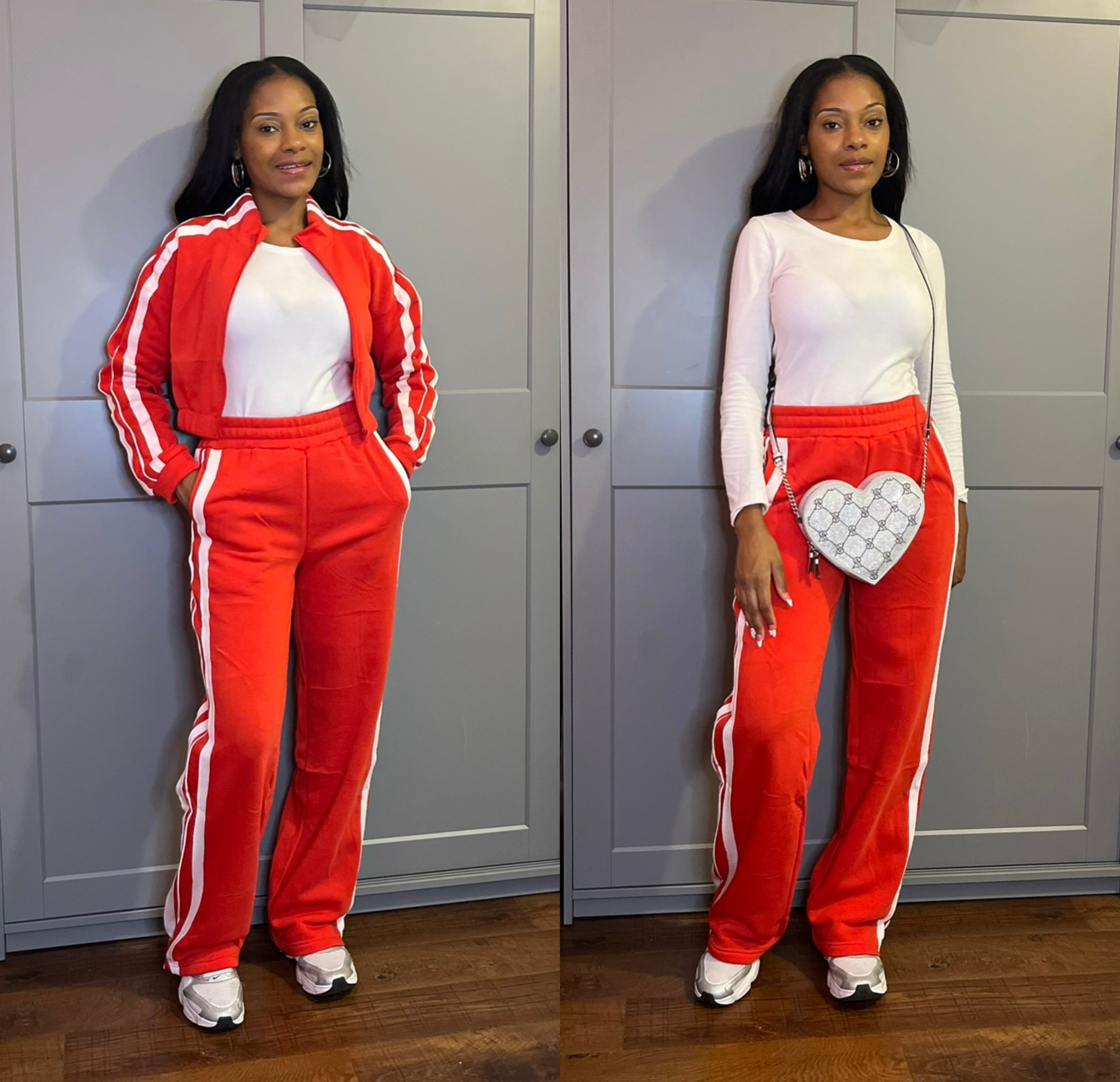 This is not your ordinary sweat suit ! It's comfy, stylish and versatile ! Wear it as separates or together.