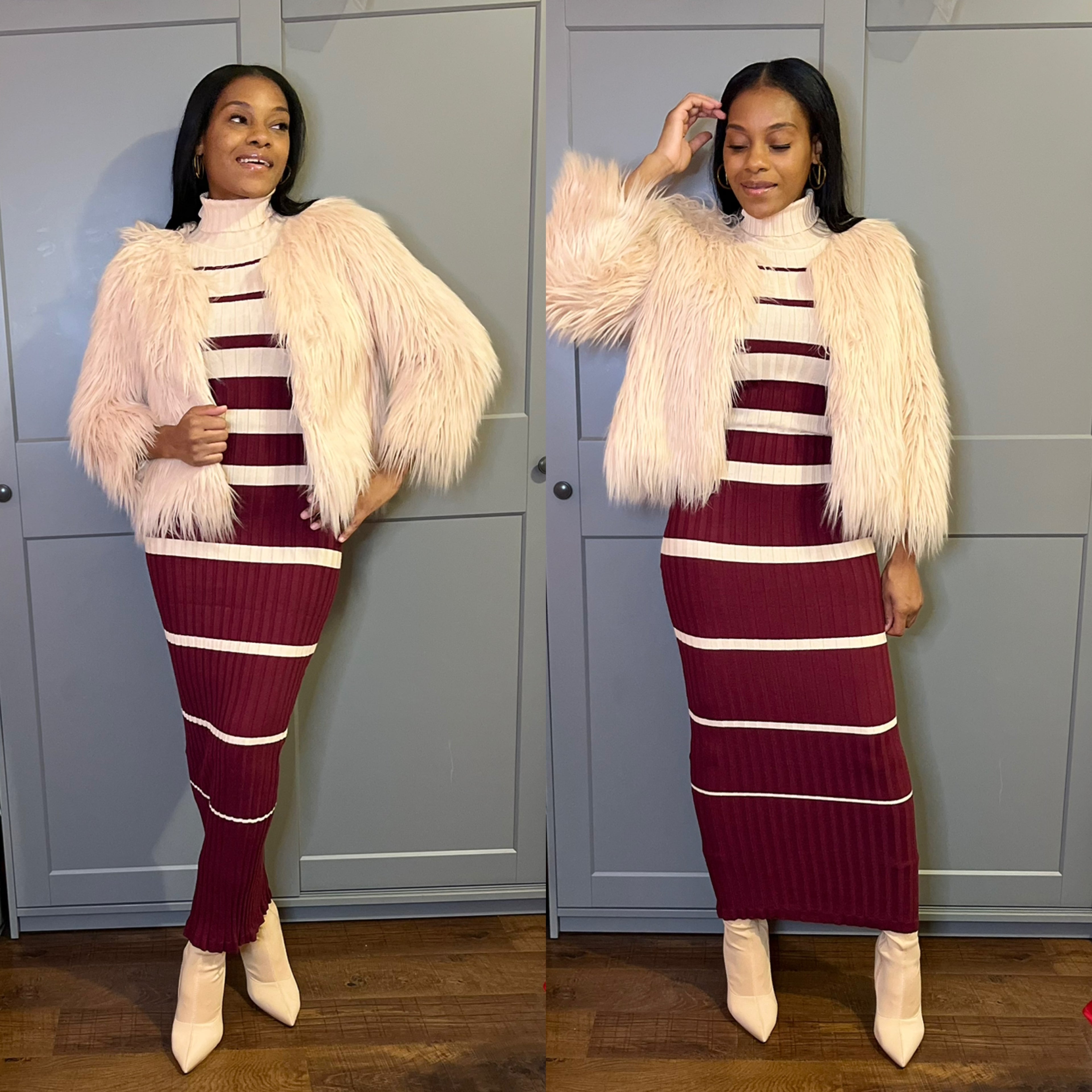 Classy, Warm & Fashionable Turtle Neck Dress paired with a fur coat !